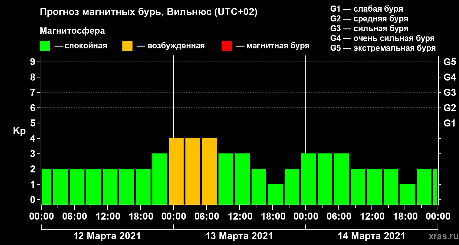 Прогноз магнитных бурь в Вильнюсе — 12 марта 2021 года