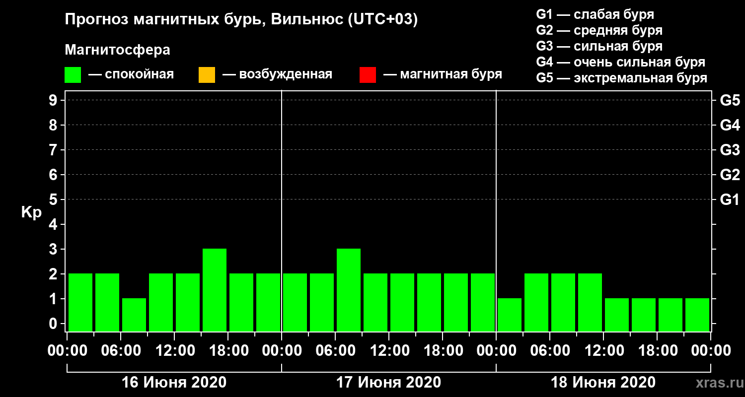 Прогноз магнитных бурь в Вильнюсе — 16 июня 2020 года