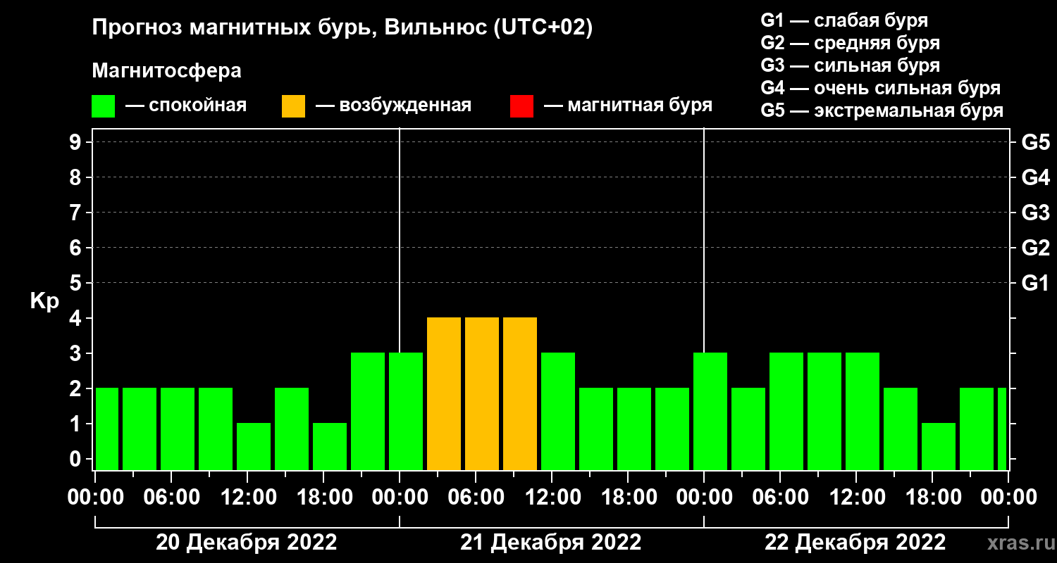 Прогноз магнитных бурь в Вильнюсе — 20 декабря 2022 года