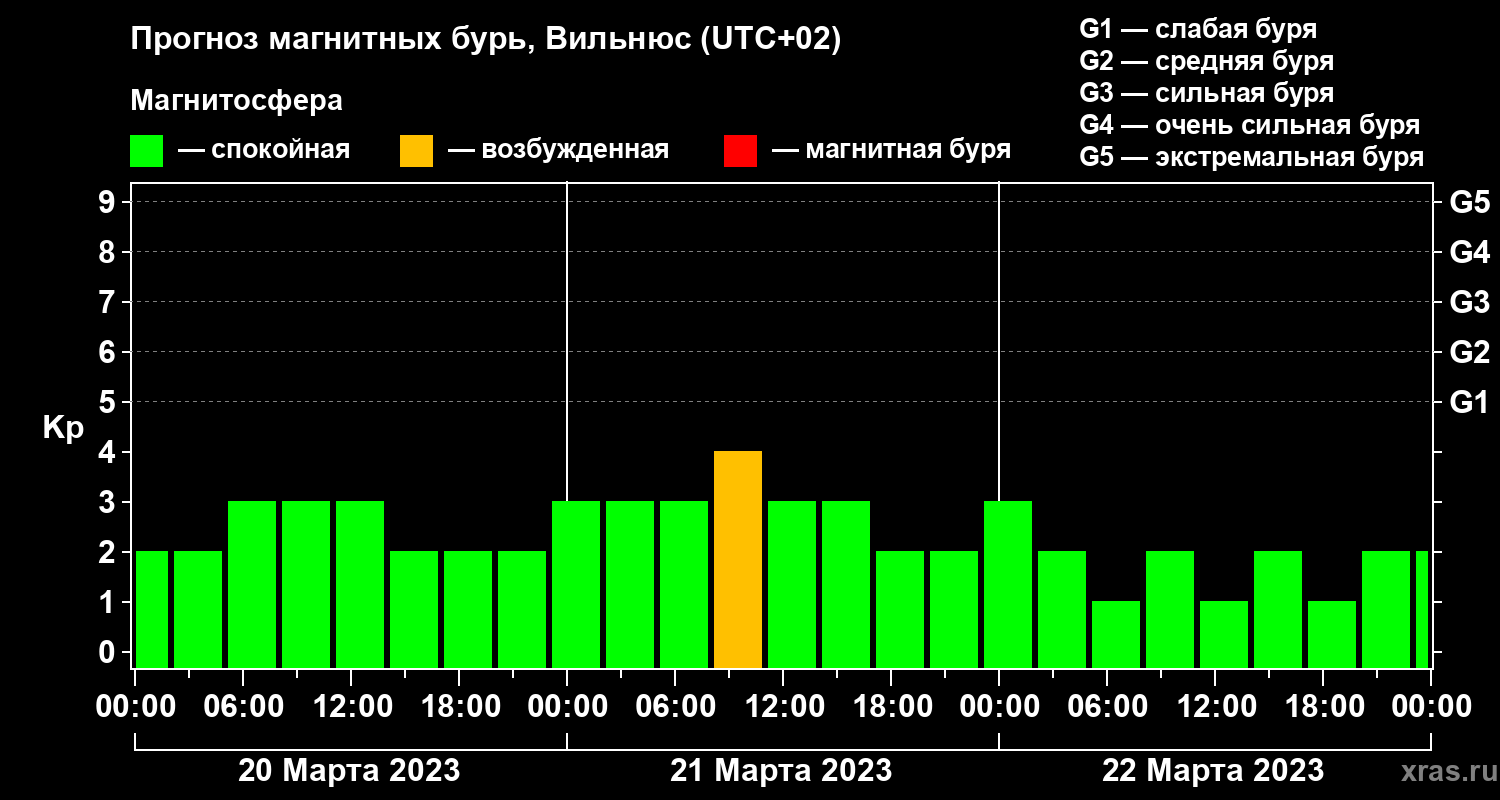 Прогноз магнитных бурь в Вильнюсе — 20 марта 2023 года