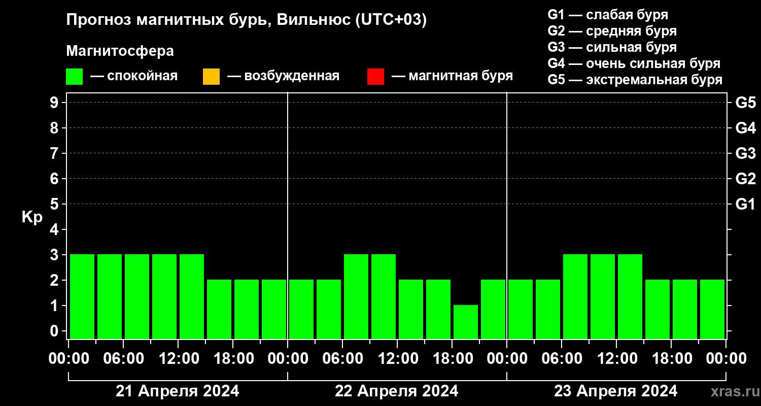 Прогноз магнитных бурь в Вильнюсе — 21 апреля 2024 года