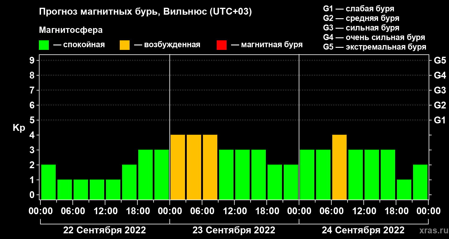 Прогноз магнитных бурь в Вильнюсе — 22 сентября 2022 года