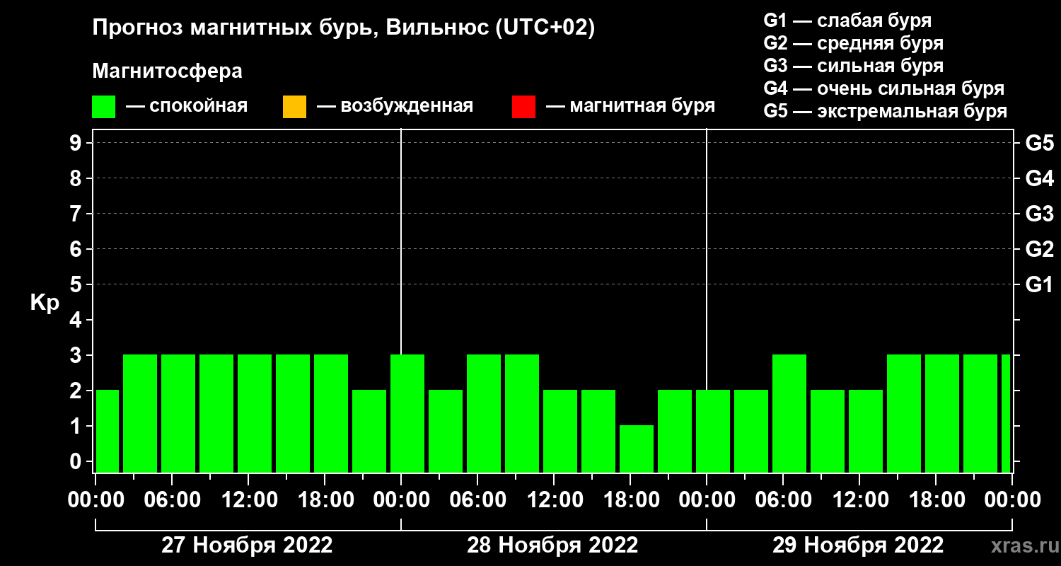 Прогноз магнитных бурь в Вильнюсе — 27 ноября 2022 года