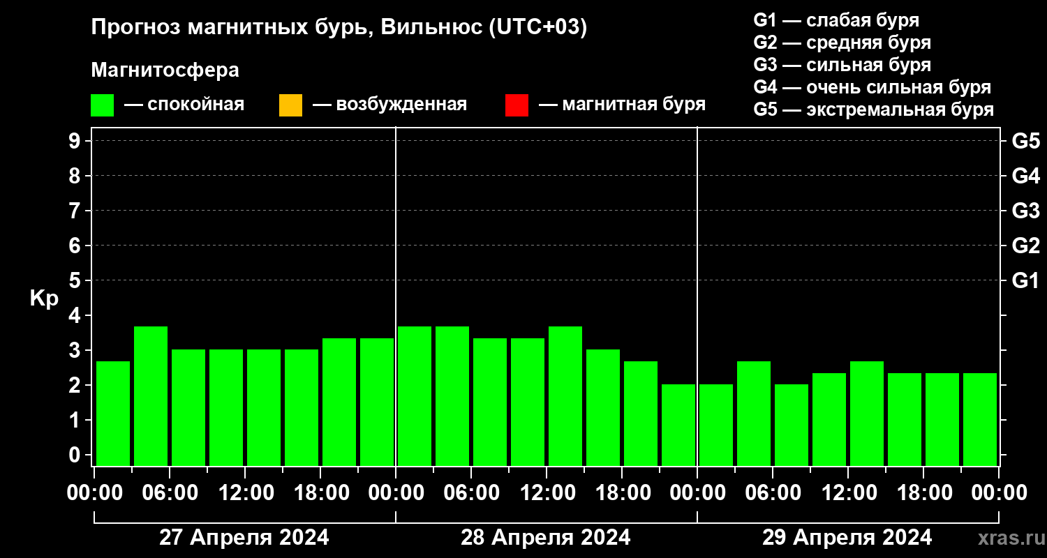 Прогноз магнитных бурь в Вильнюсе — 27 апреля 2024 года