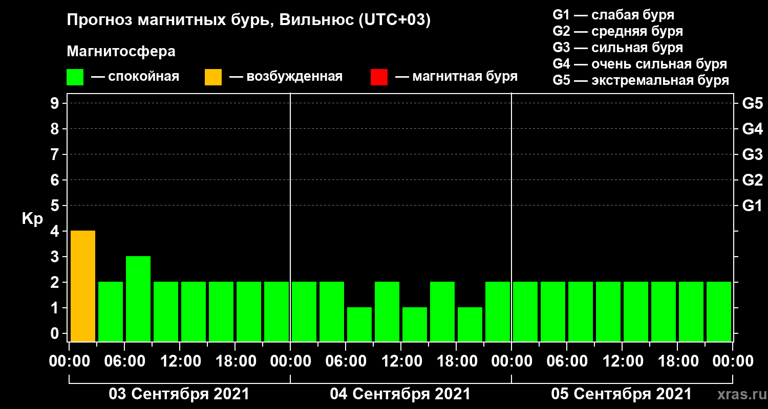 Прогноз магнитных бурь в Вильнюсе — 3 сентября 2021 года
