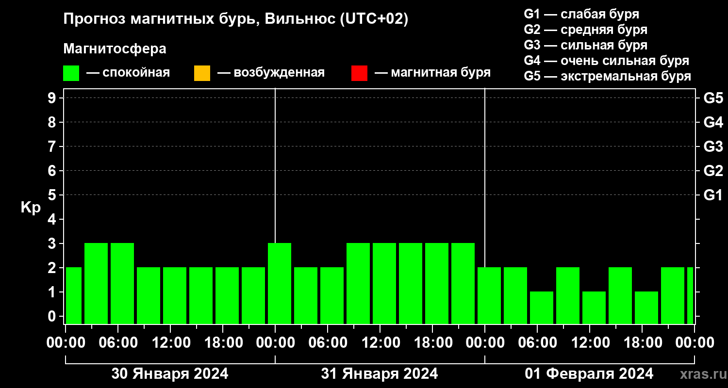 Прогноз магнитных бурь в Вильнюсе — 30 января 2024 года