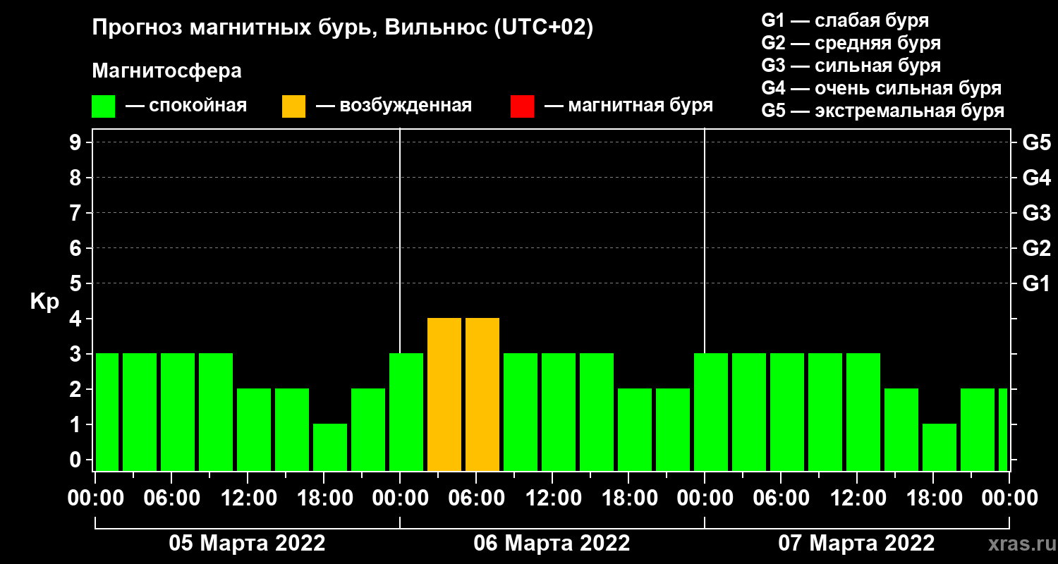 Прогноз магнитных бурь в Вильнюсе — 5 марта 2022 года