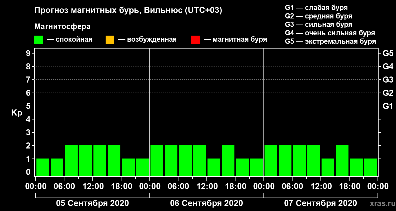 Прогноз магнитных бурь в Вильнюсе — 5 сентября 2020 года