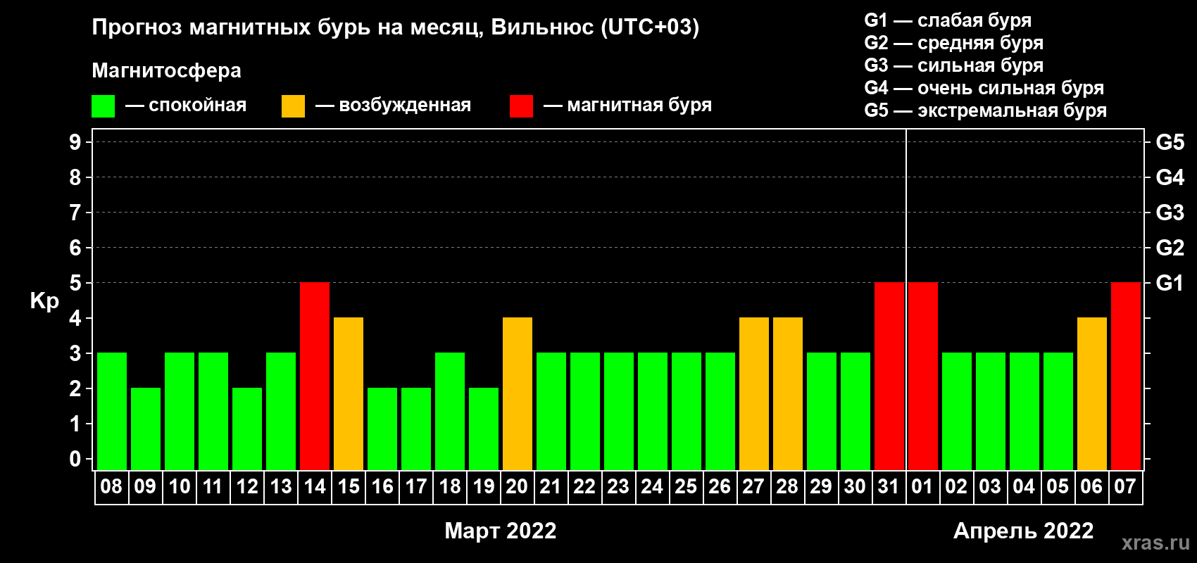 Прогноз магнитных бурь в Вильнюсе — 8 марта 2022 года