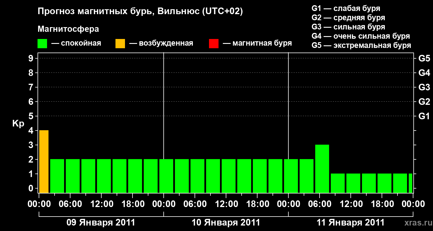 Прогноз магнитных бурь в Вильнюсе — 9 января 2011 года