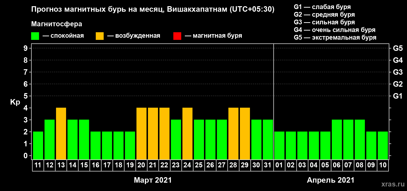 Прогноз магнитных бурь в Вишакхапатнаме — 11 марта 2021 года