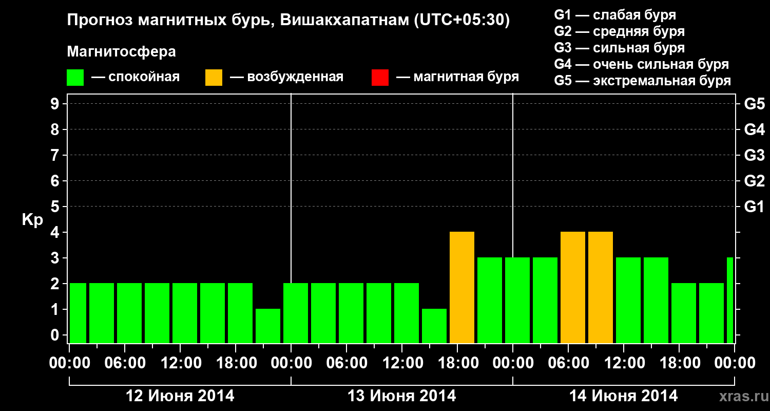 Прогноз магнитных бурь в Вишакхапатнаме — 12 июня 2014 года