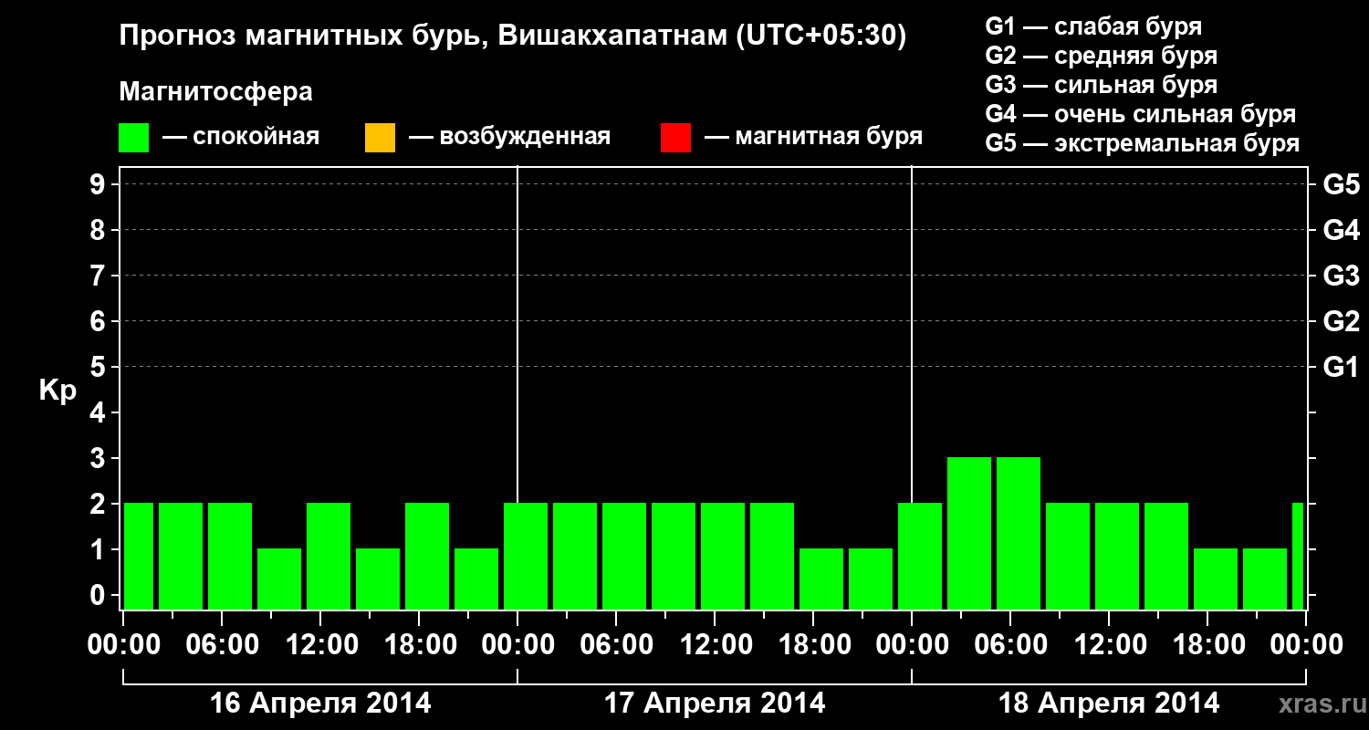 Прогноз магнитных бурь в Вишакхапатнаме — 16 апреля 2014 года