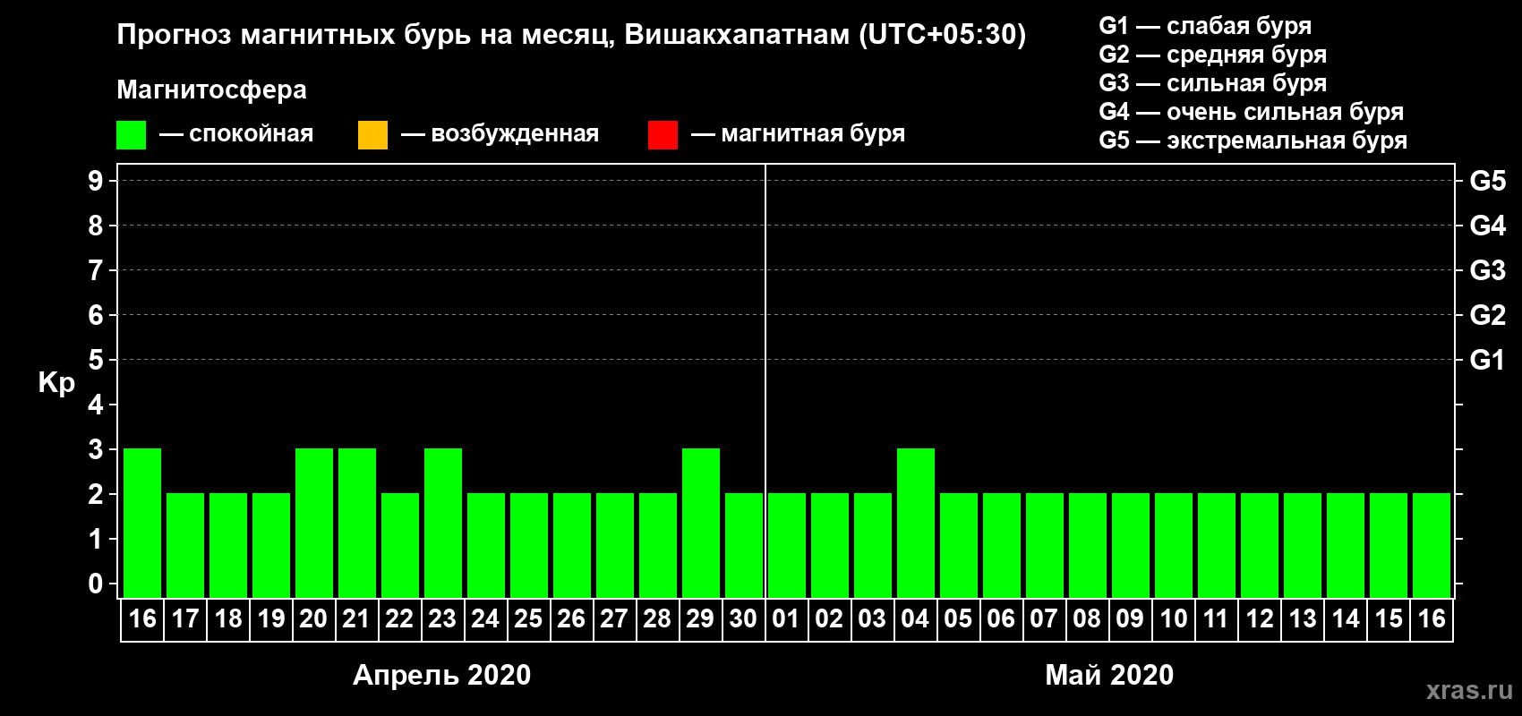 Прогноз магнитных бурь в Вишакхапатнаме — 16 апреля 2020 года
