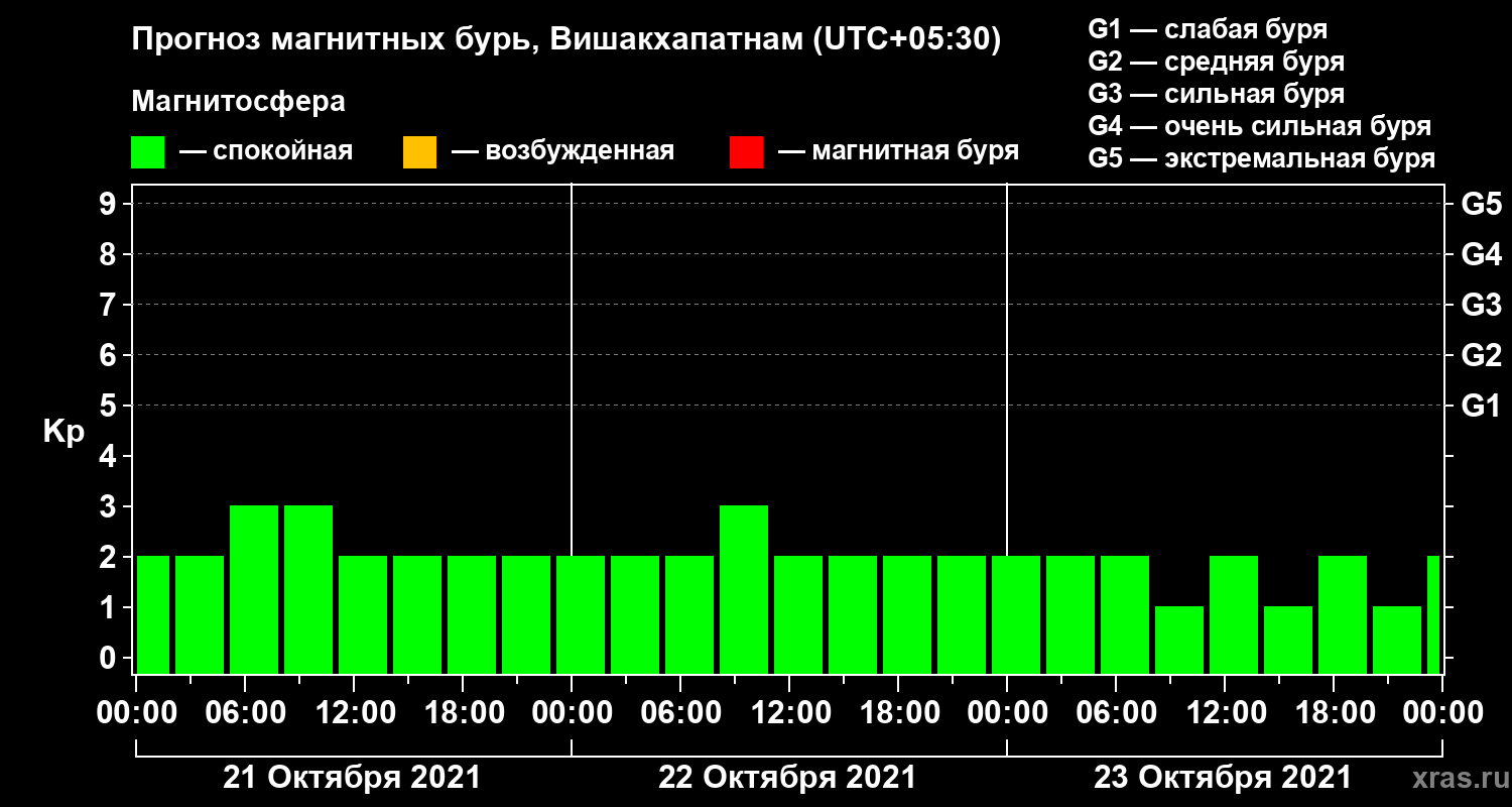 Прогноз магнитных бурь в Вишакхапатнаме — 21 октября 2021 года