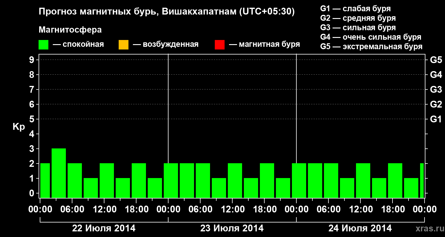 Прогноз магнитных бурь в Вишакхапатнаме — 22 июля 2014 года