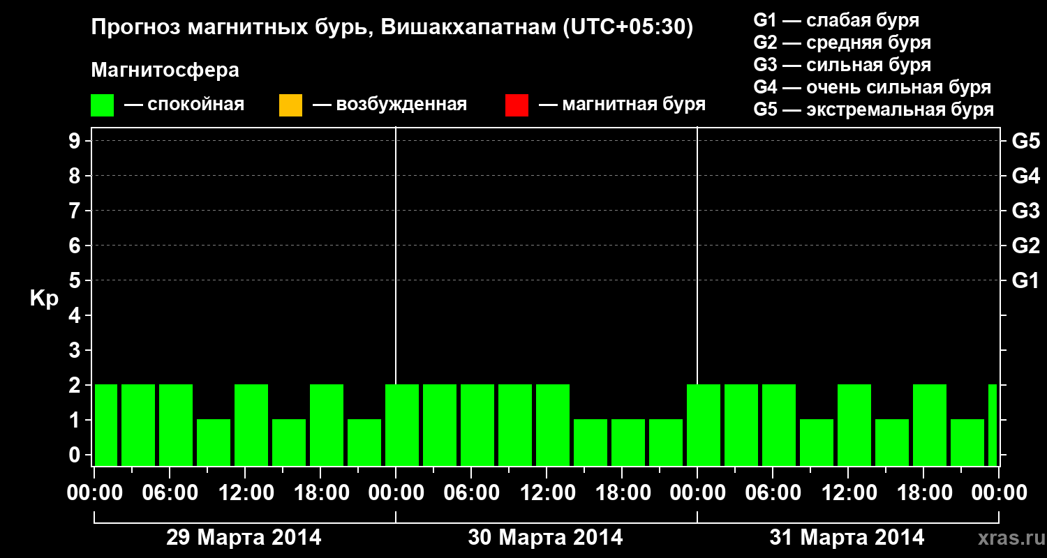 Прогноз магнитных бурь в Вишакхапатнаме — 29 марта 2014 года