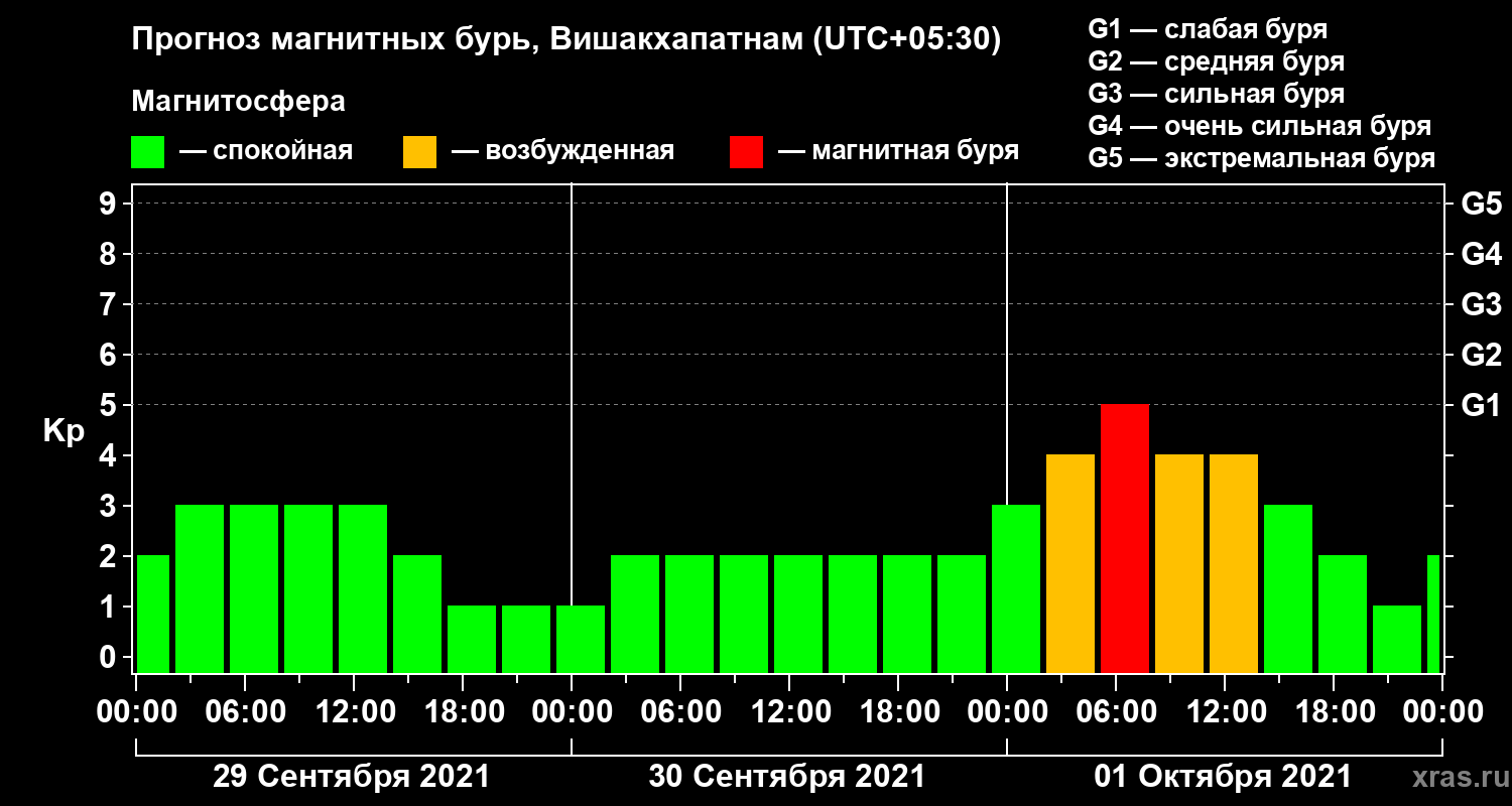 Прогноз магнитных бурь в Вишакхапатнаме — 29 сентября 2021 года
