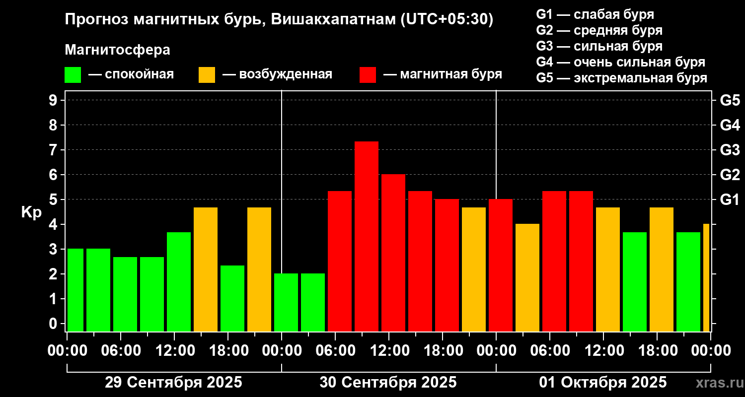 Прогноз магнитных бурь в Вишакхапатнаме — 29 сентября 2025 года