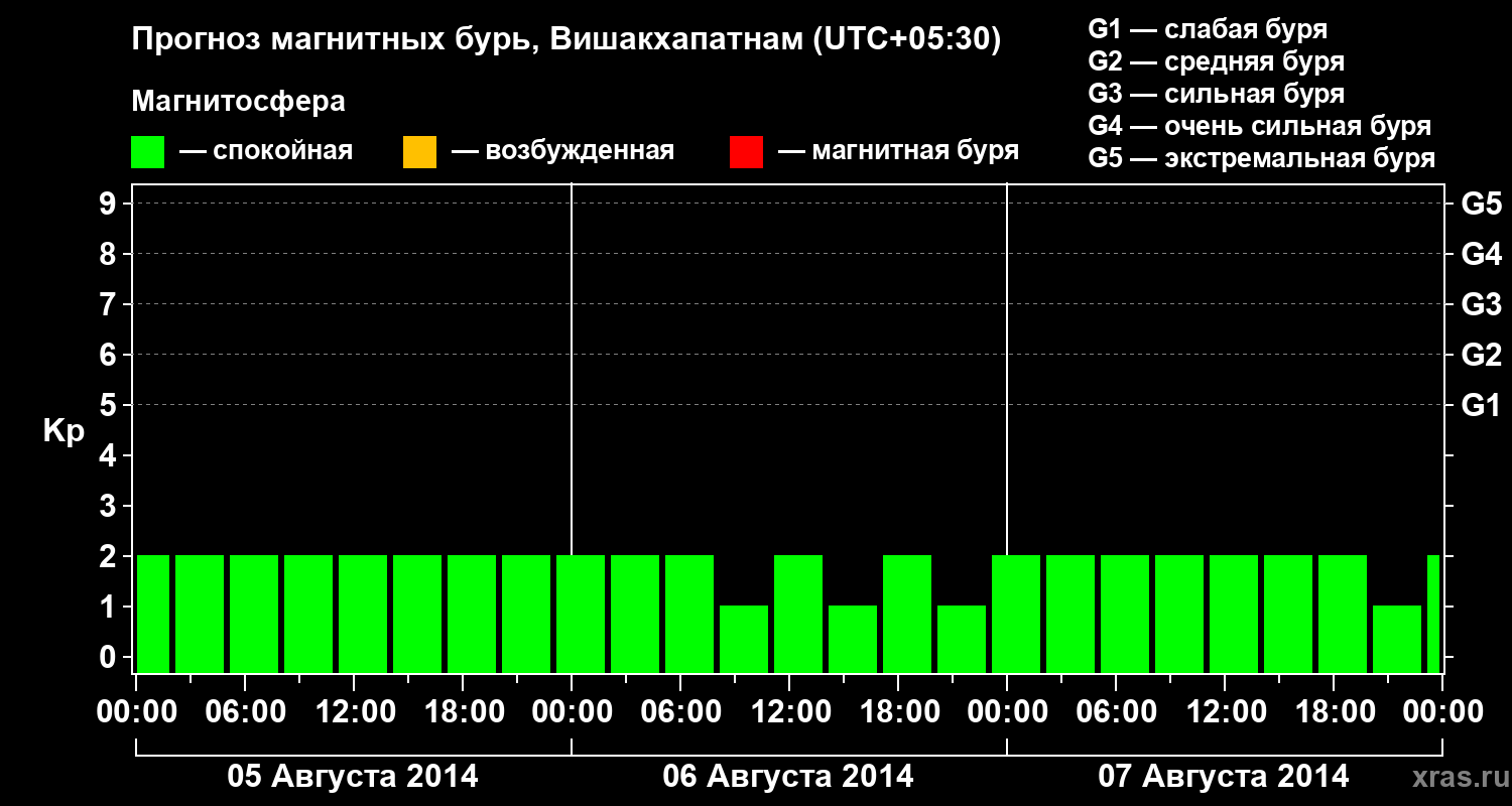 Прогноз магнитных бурь в Вишакхапатнаме — 5 августа 2014 года