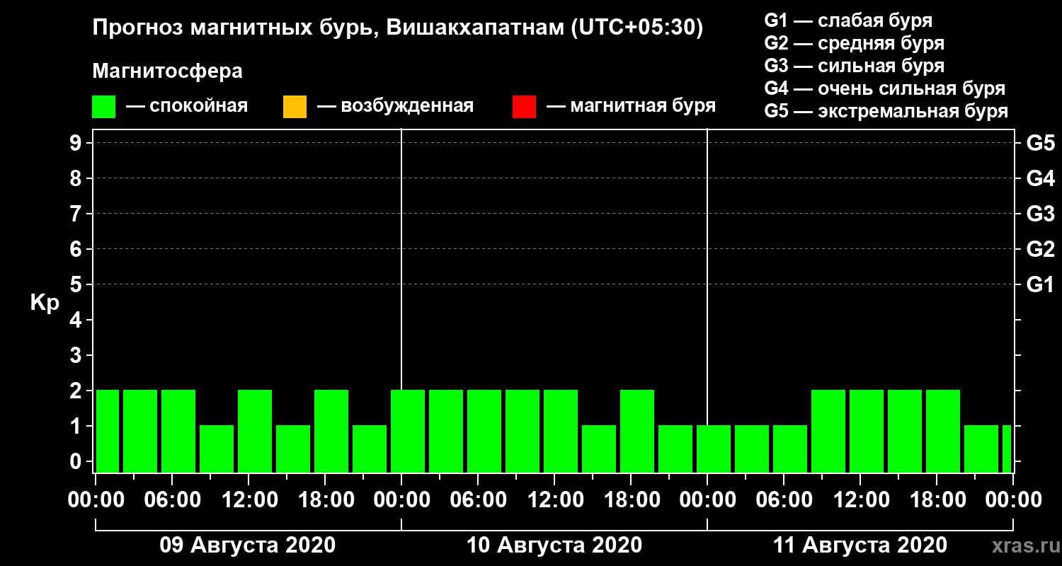 Прогноз магнитных бурь в Вишакхапатнаме — 9 августа 2020 года