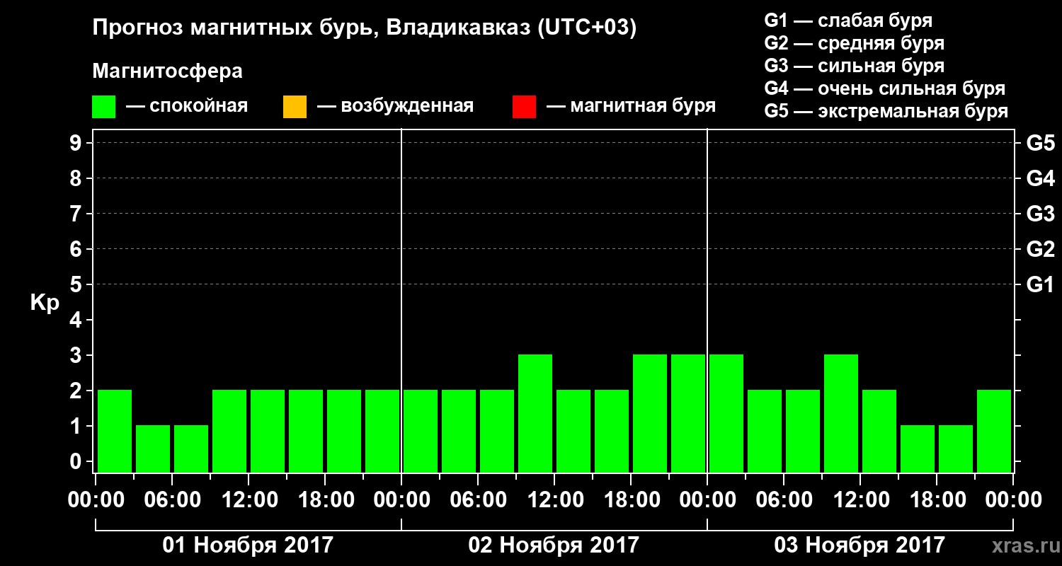 Прогноз магнитных бурь во Владикавказе — 1 ноября 2017 года