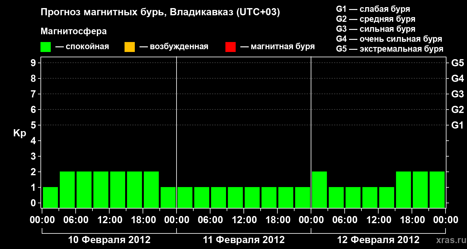 Прогноз магнитных бурь во Владикавказе — 10 февраля 2012 года