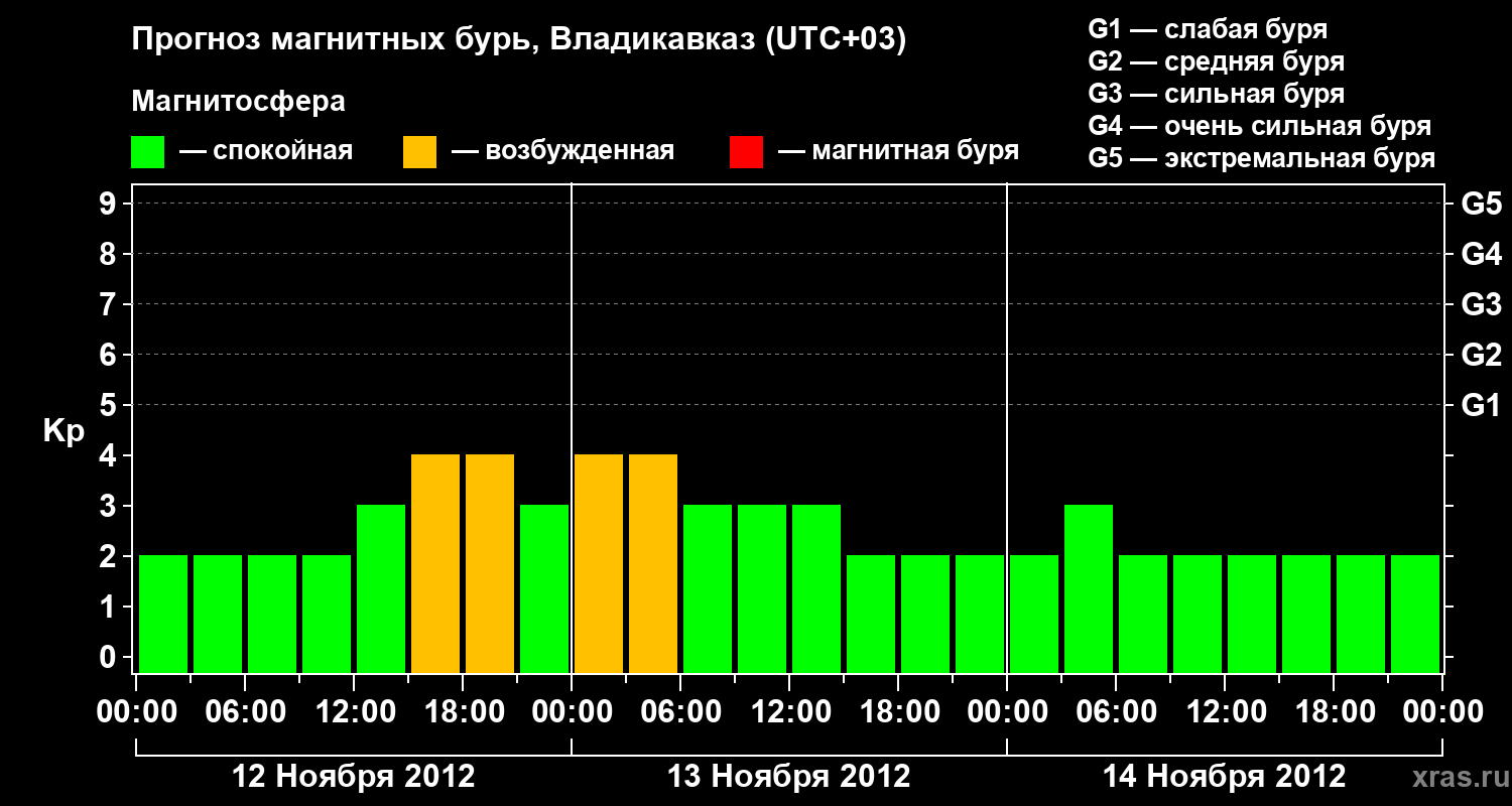 Прогноз магнитных бурь во Владикавказе — 12 ноября 2012 года