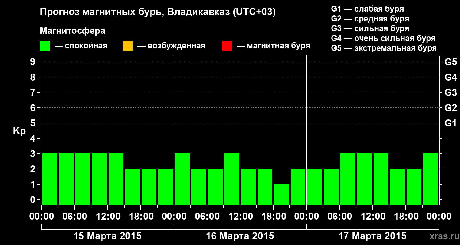 Прогноз магнитных бурь во Владикавказе — 15 марта 2015 года