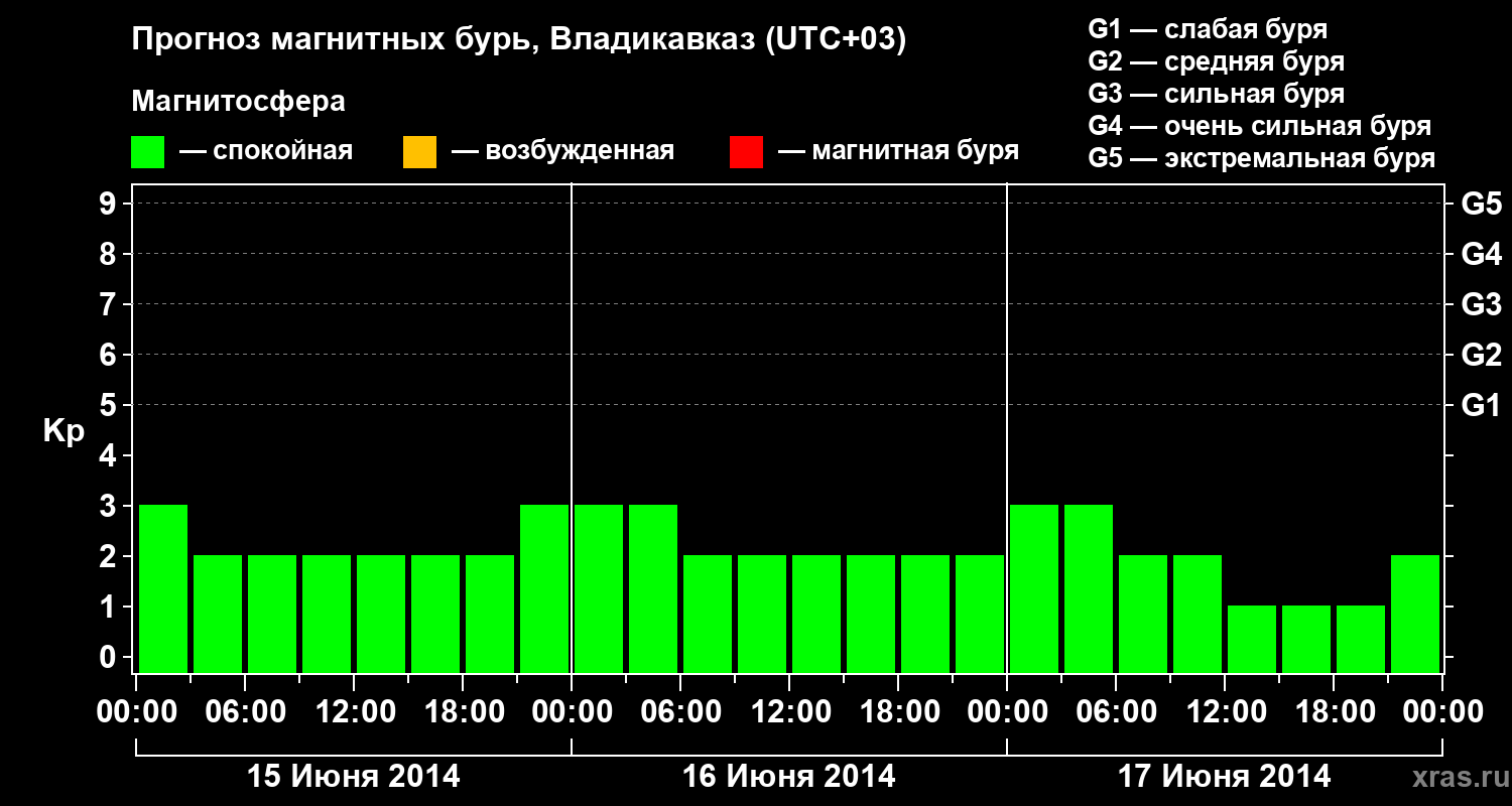 Прогноз магнитных бурь во Владикавказе — 15 июня 2014 года