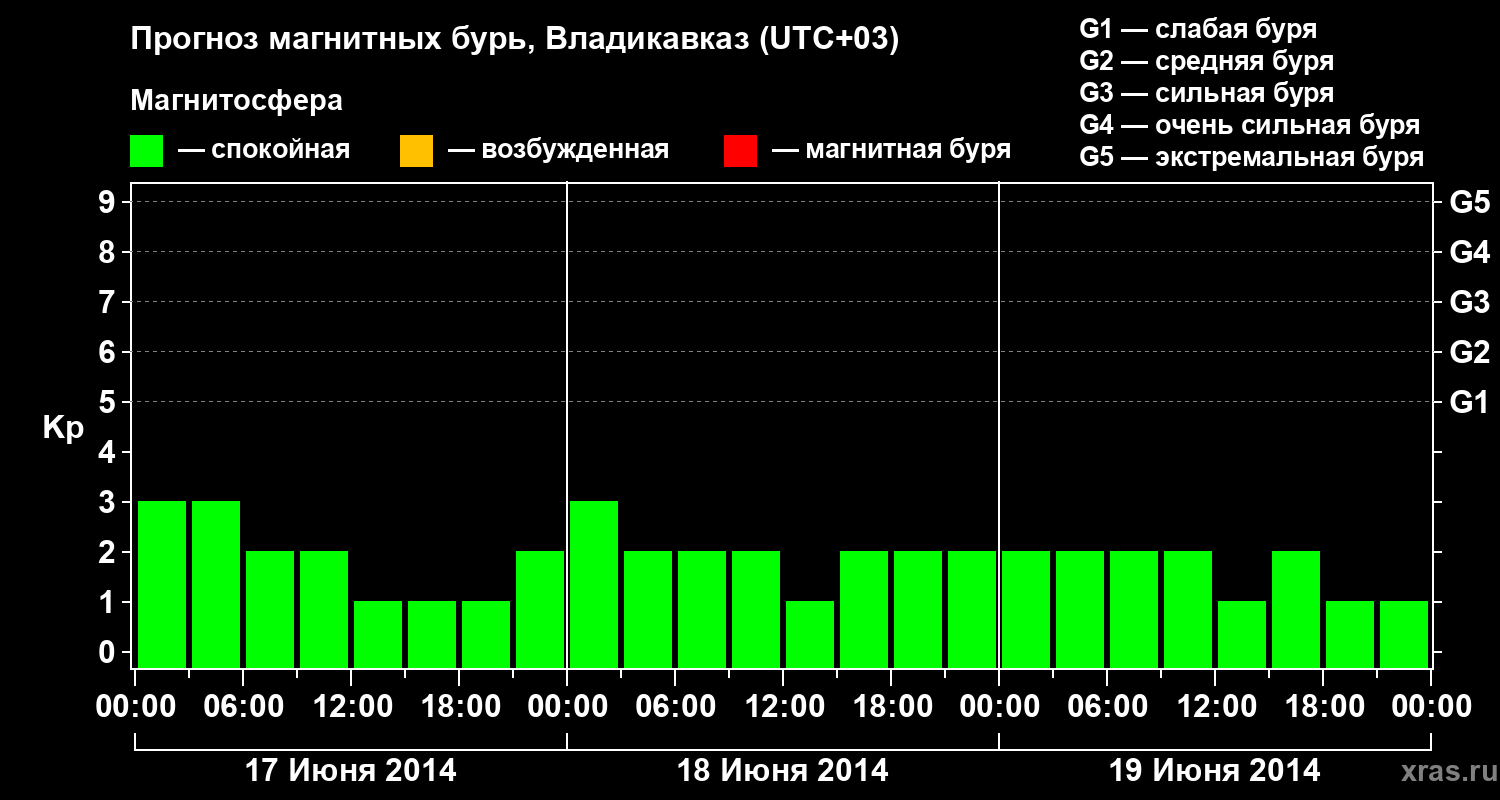 Прогноз магнитных бурь во Владикавказе — 17 июня 2014 года