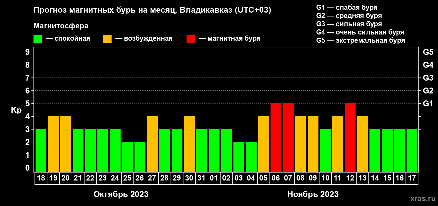 Прогноз магнитных бурь во Владикавказе — 18 октября 2023 года