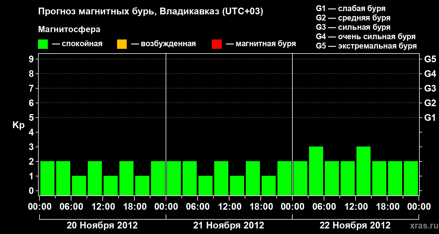Прогноз магнитных бурь во Владикавказе — 20 ноября 2012 года