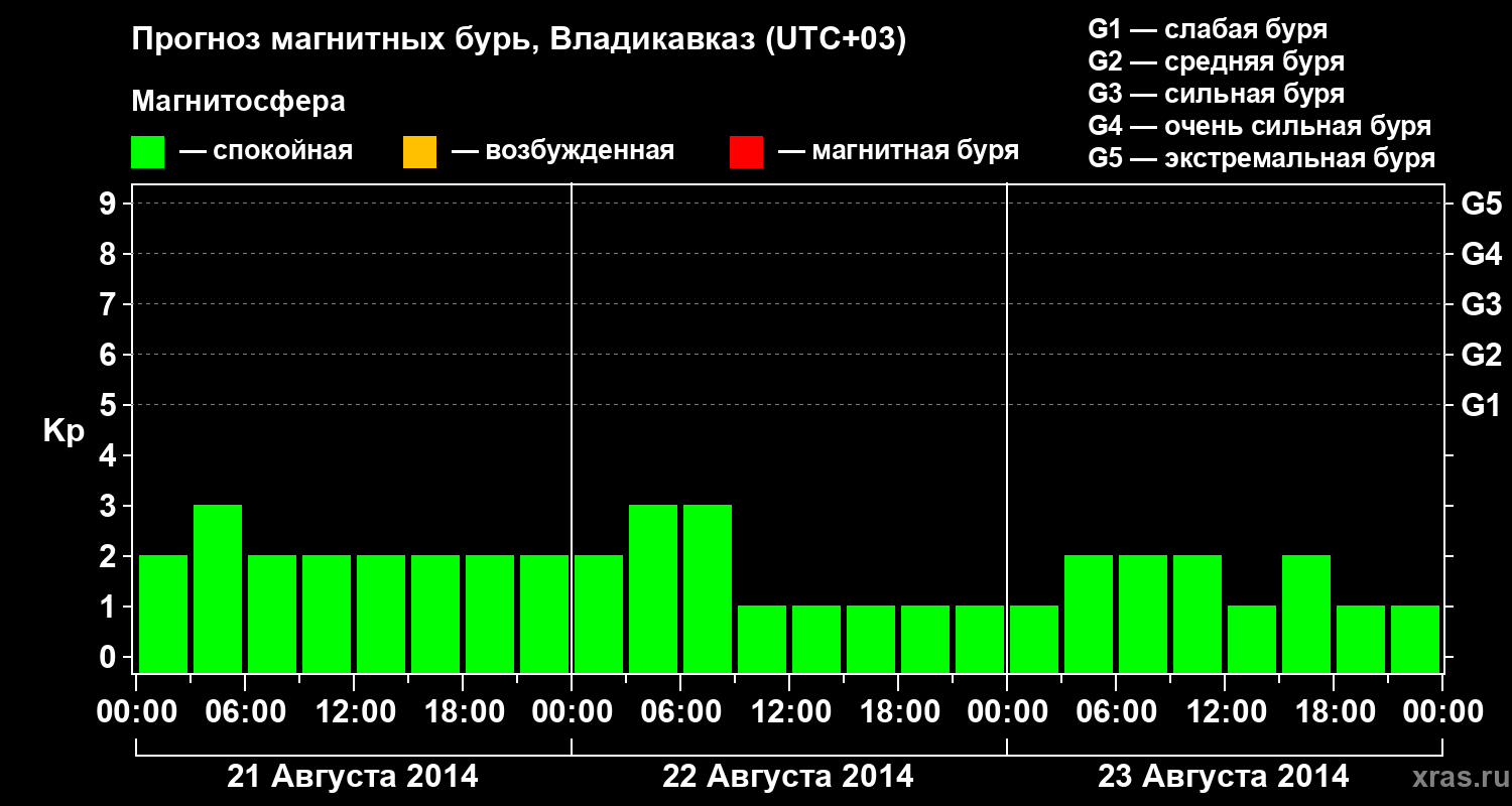 Прогноз магнитных бурь во Владикавказе — 21 августа 2014 года