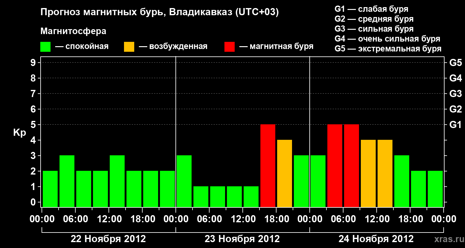 Прогноз магнитных бурь во Владикавказе — 22 ноября 2012 года