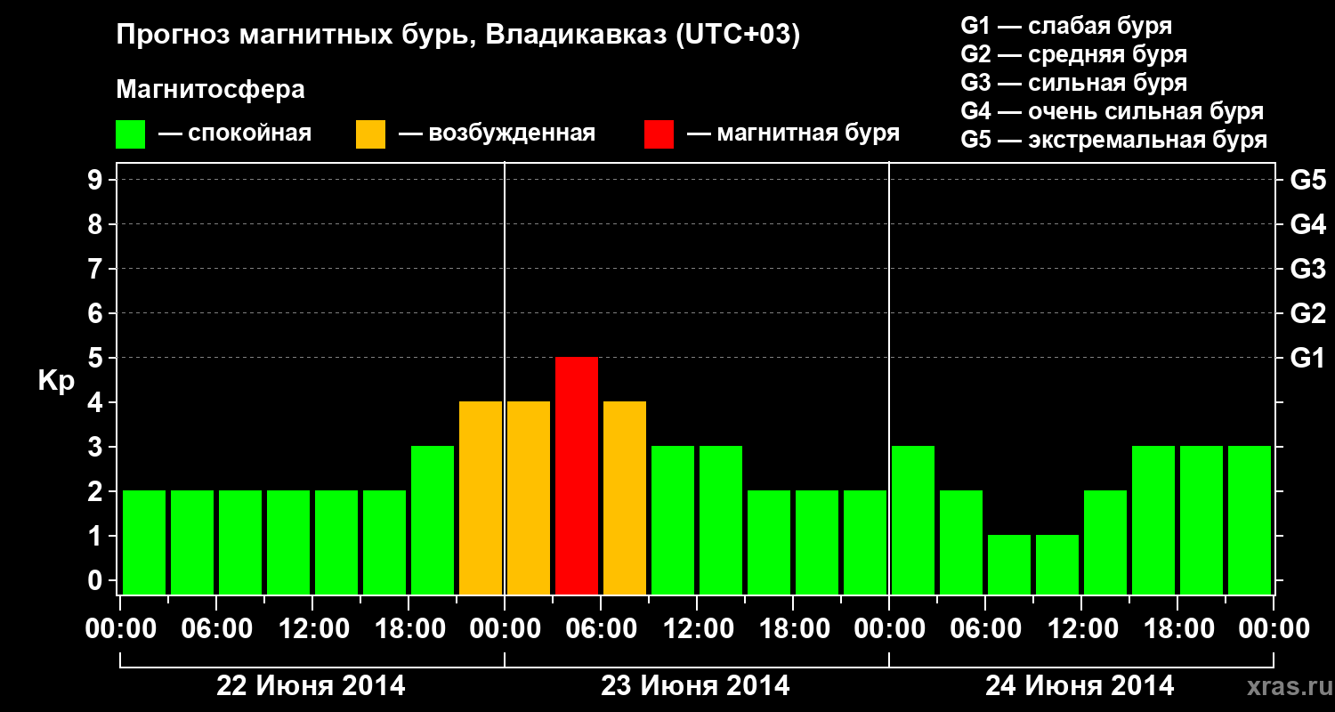Прогноз магнитных бурь во Владикавказе — 22 июня 2014 года
