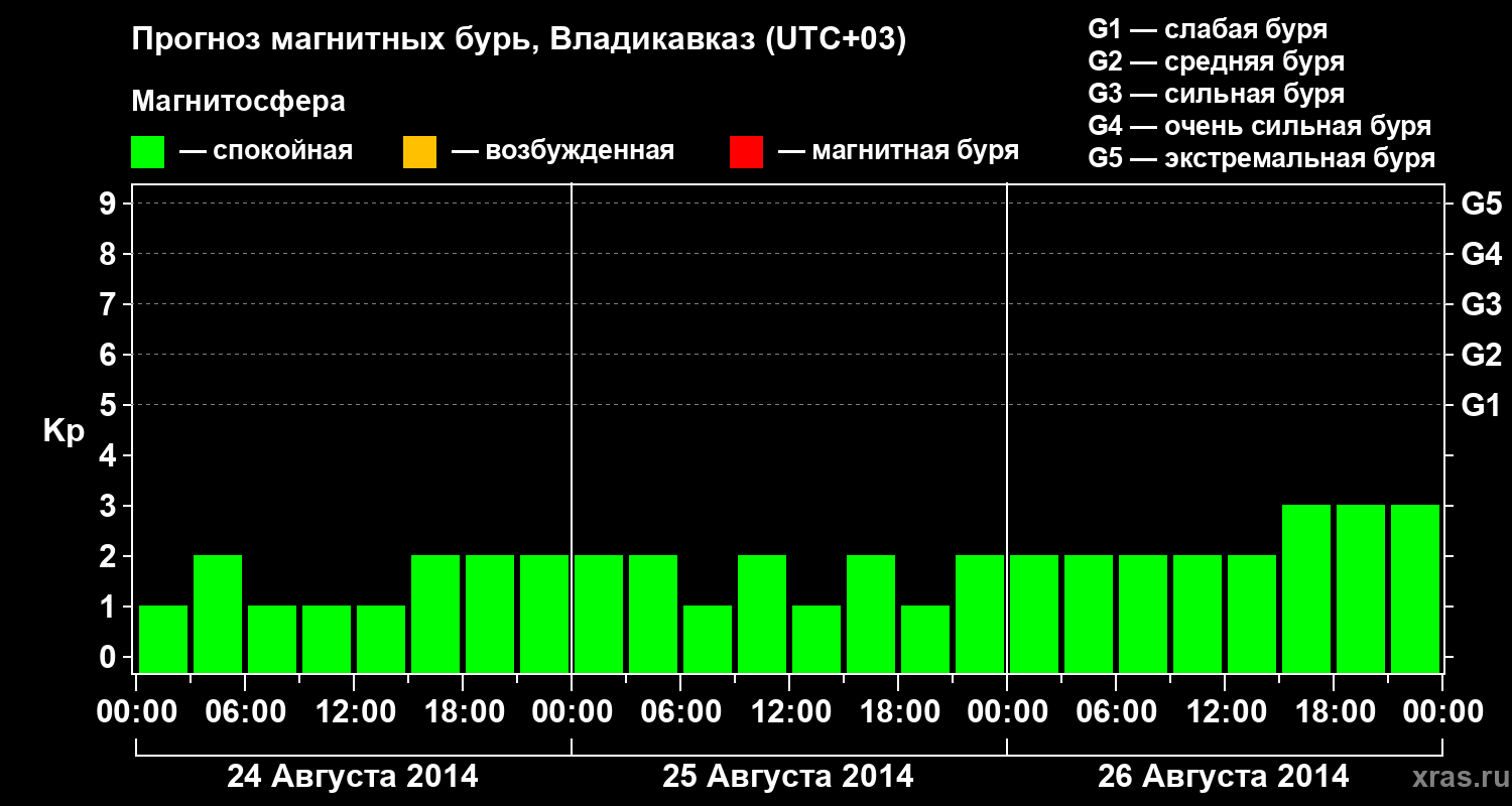 Прогноз магнитных бурь во Владикавказе — 24 августа 2014 года