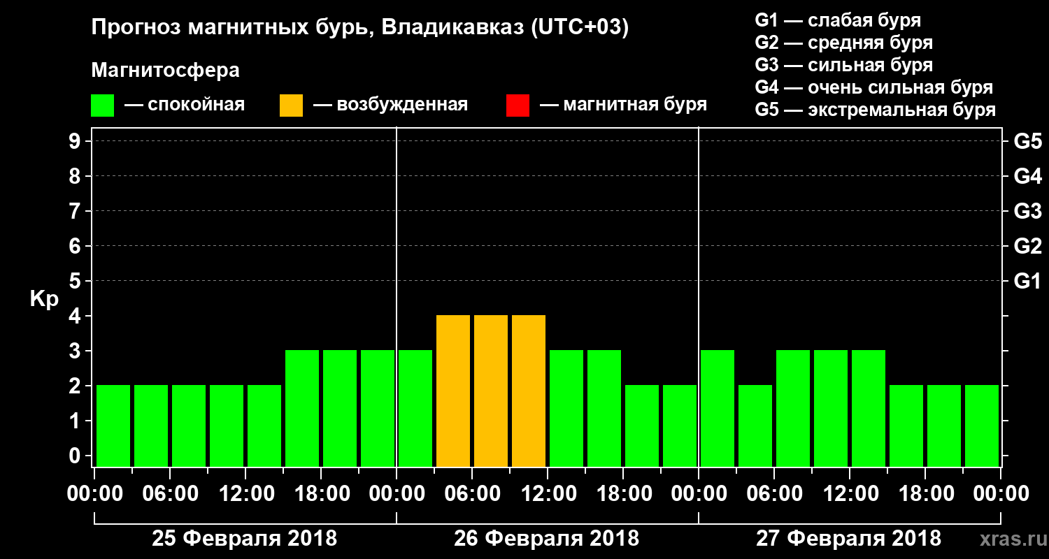 Прогноз магнитных бурь во Владикавказе — 25 февраля 2018 года