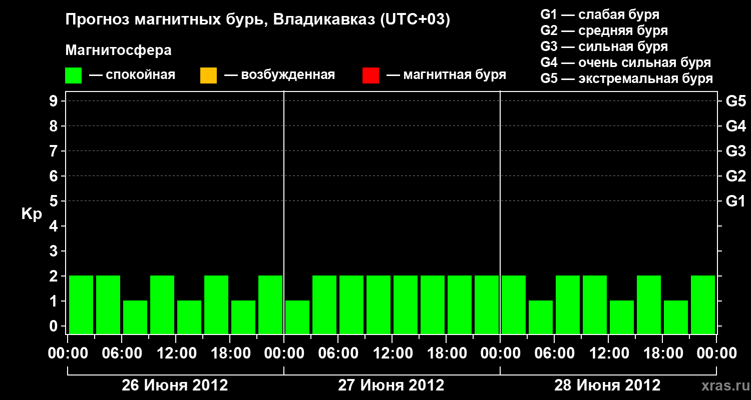 Прогноз магнитных бурь во Владикавказе — 26 июня 2012 года