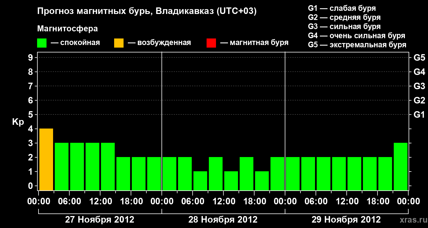 Прогноз магнитных бурь во Владикавказе — 27 ноября 2012 года