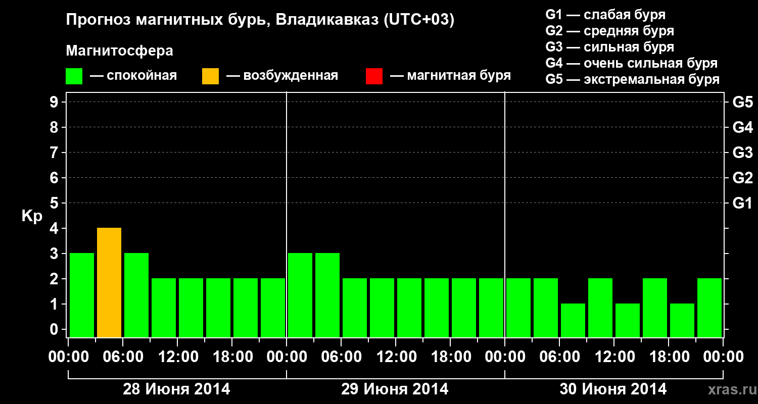 Прогноз магнитных бурь во Владикавказе — 28 июня 2014 года
