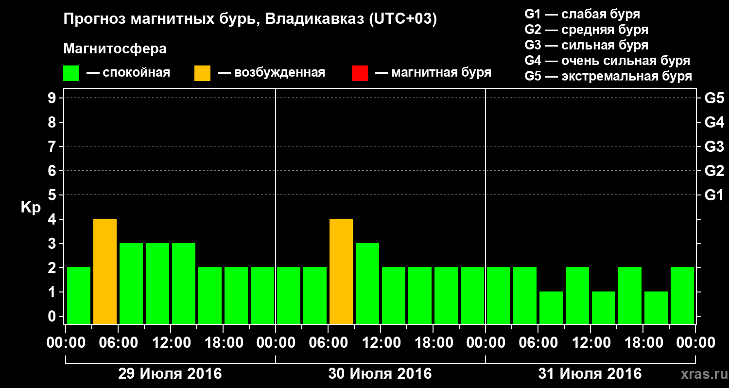 Прогноз магнитных бурь во Владикавказе — 29 июля 2016 года