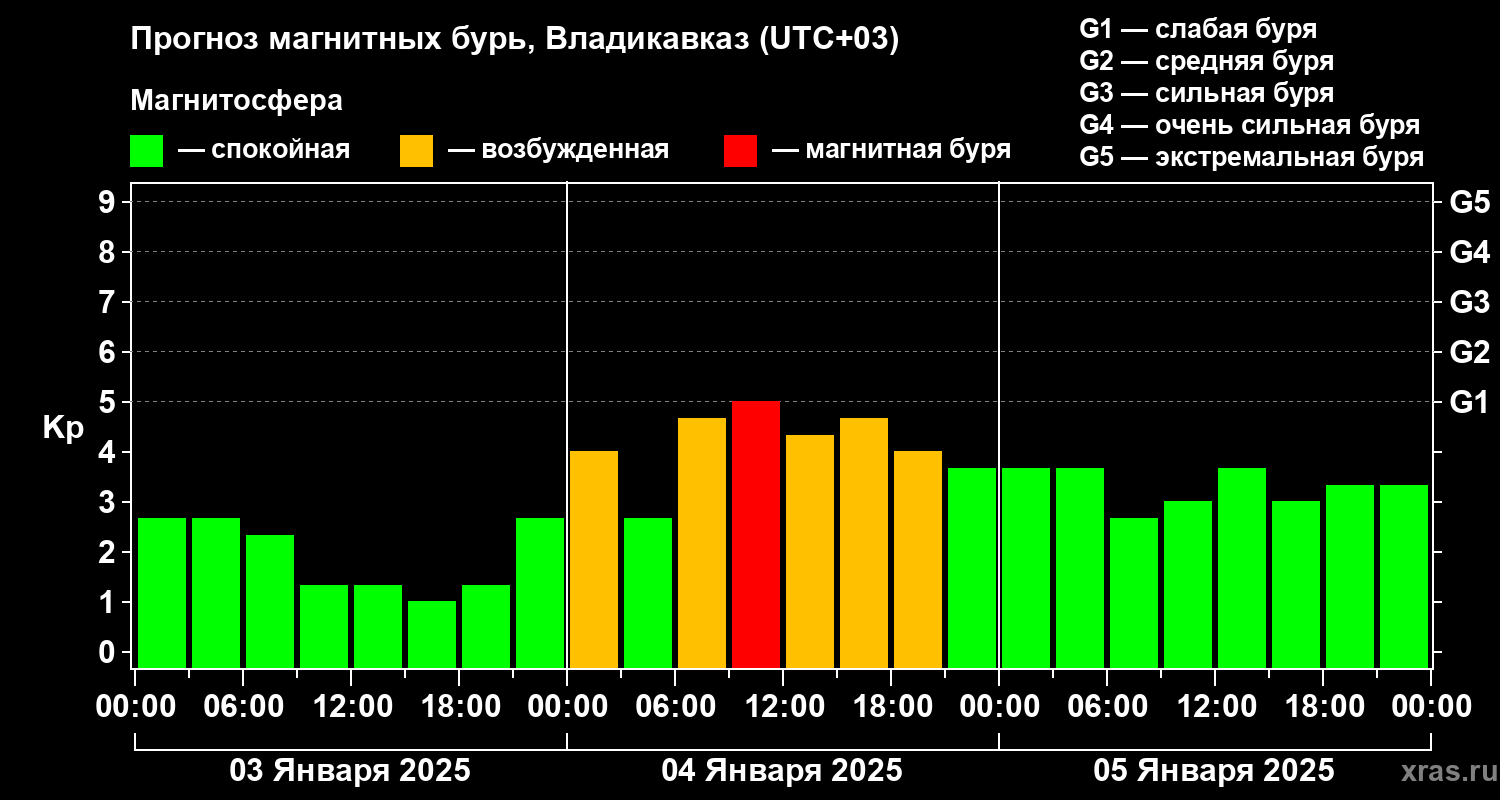 Прогноз магнитных бурь во Владикавказе — 3 января 2025 года