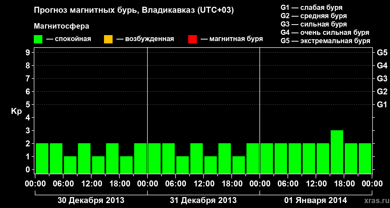 Прогноз магнитных бурь во Владикавказе — 30 декабря 2013 года
