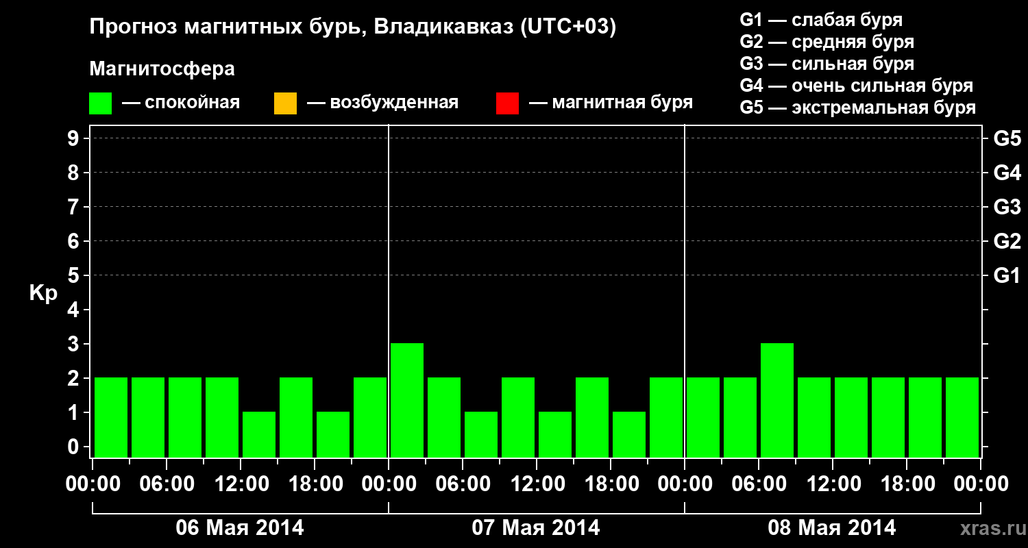 Прогноз магнитных бурь во Владикавказе — 6 мая 2014 года