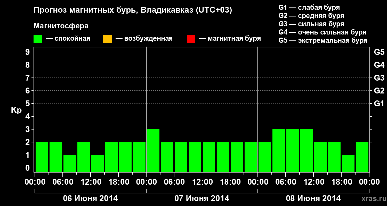 Прогноз магнитных бурь во Владикавказе — 6 июня 2014 года