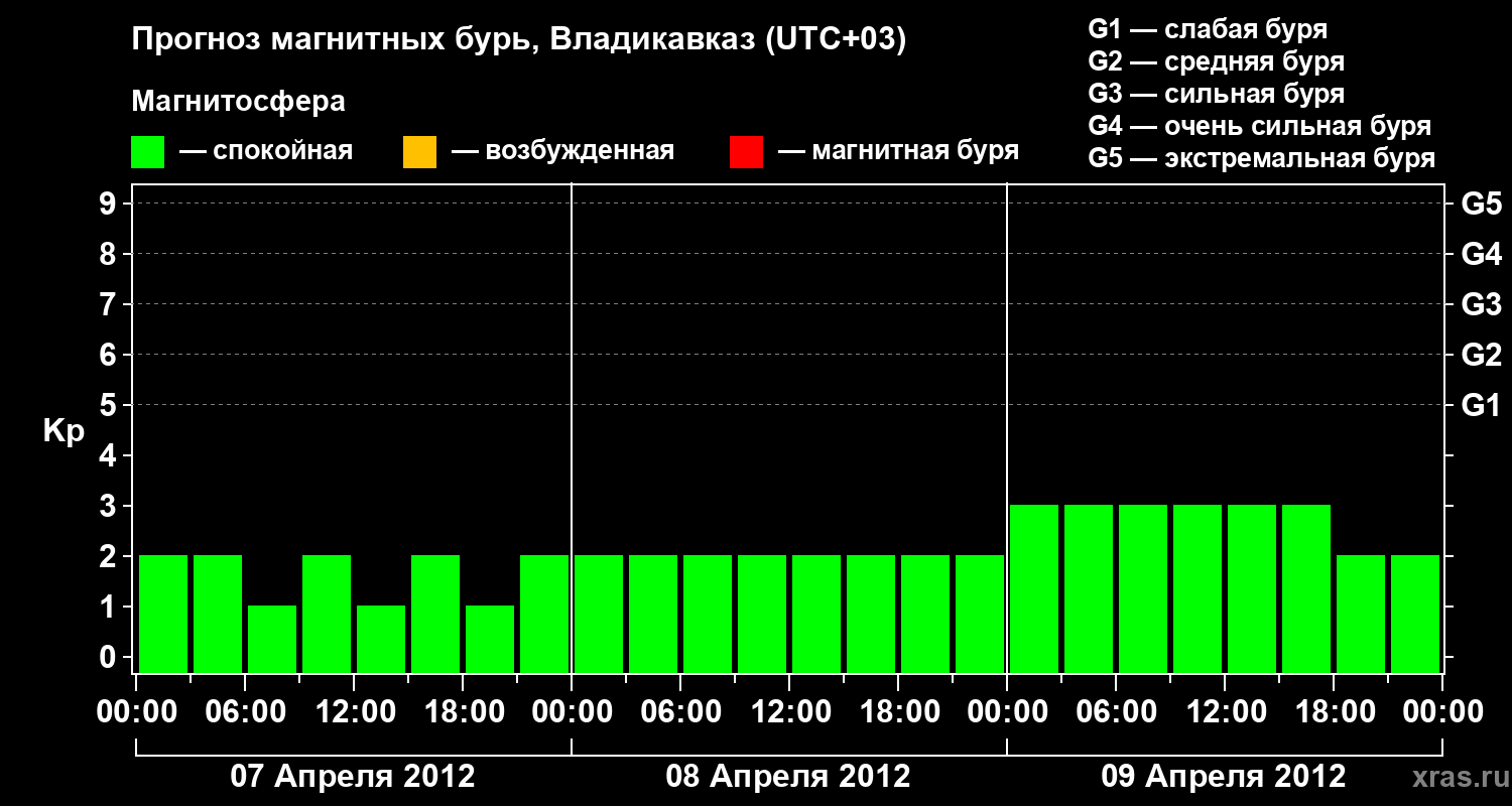 Прогноз магнитных бурь во Владикавказе — 7 апреля 2012 года