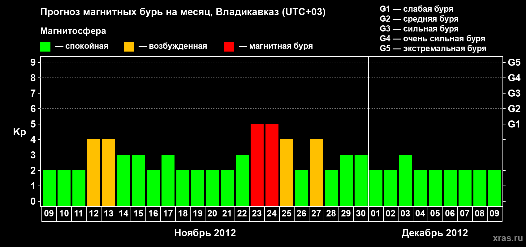 Прогноз магнитных бурь во Владикавказе — 9 ноября 2012 года
