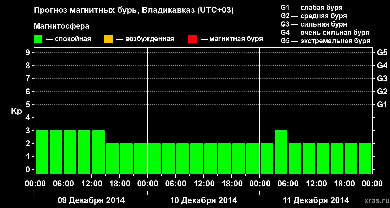 Прогноз магнитных бурь во Владикавказе — 9 декабря 2014 года
