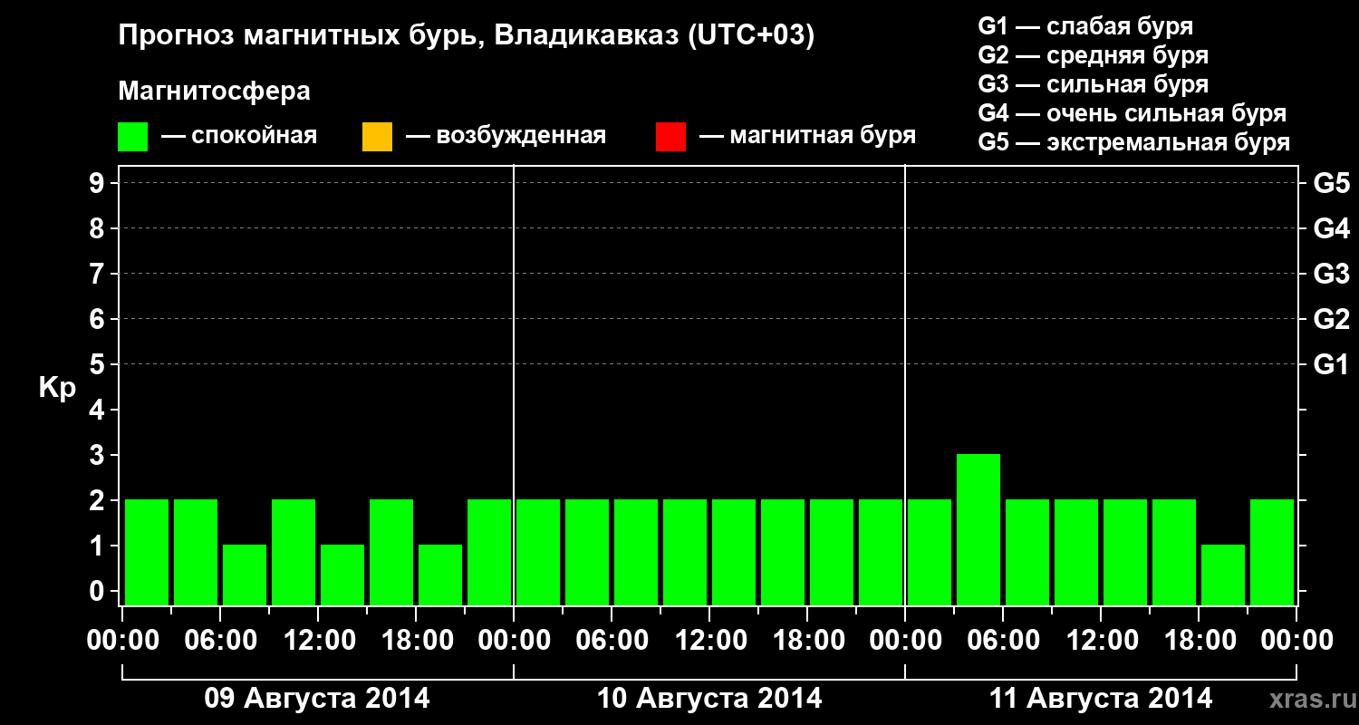 Прогноз магнитных бурь во Владикавказе — 9 августа 2014 года
